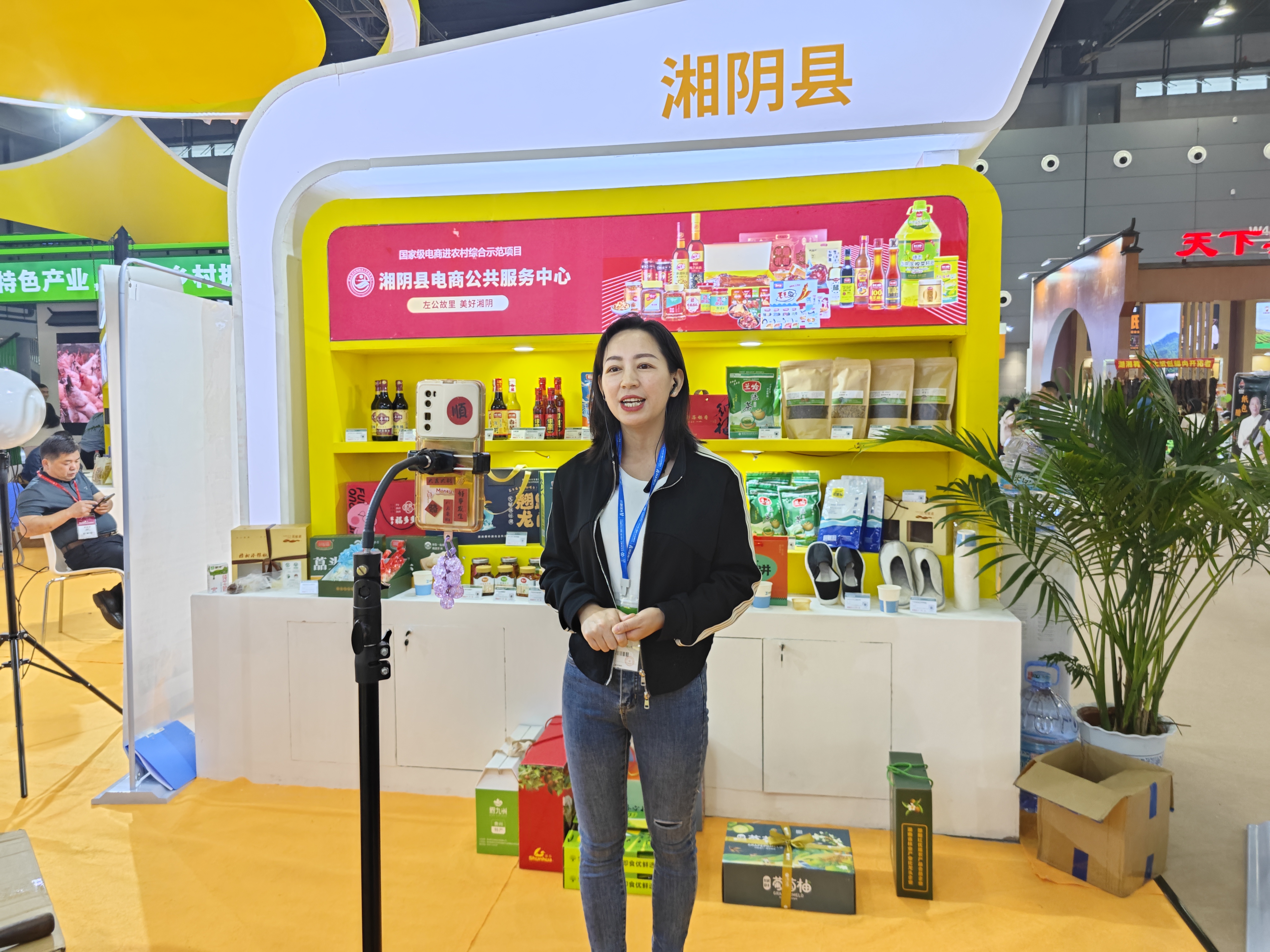 同时,现场举办丰富的配套活动,如直播带货、线上逛展、品鉴美食、与观展游客互动等,多形式突出湘阴项目模式和项目亮点,吸引了不少客商驻足了解、洽谈合作事宜,充分展现湘阴电商发展的新活力。