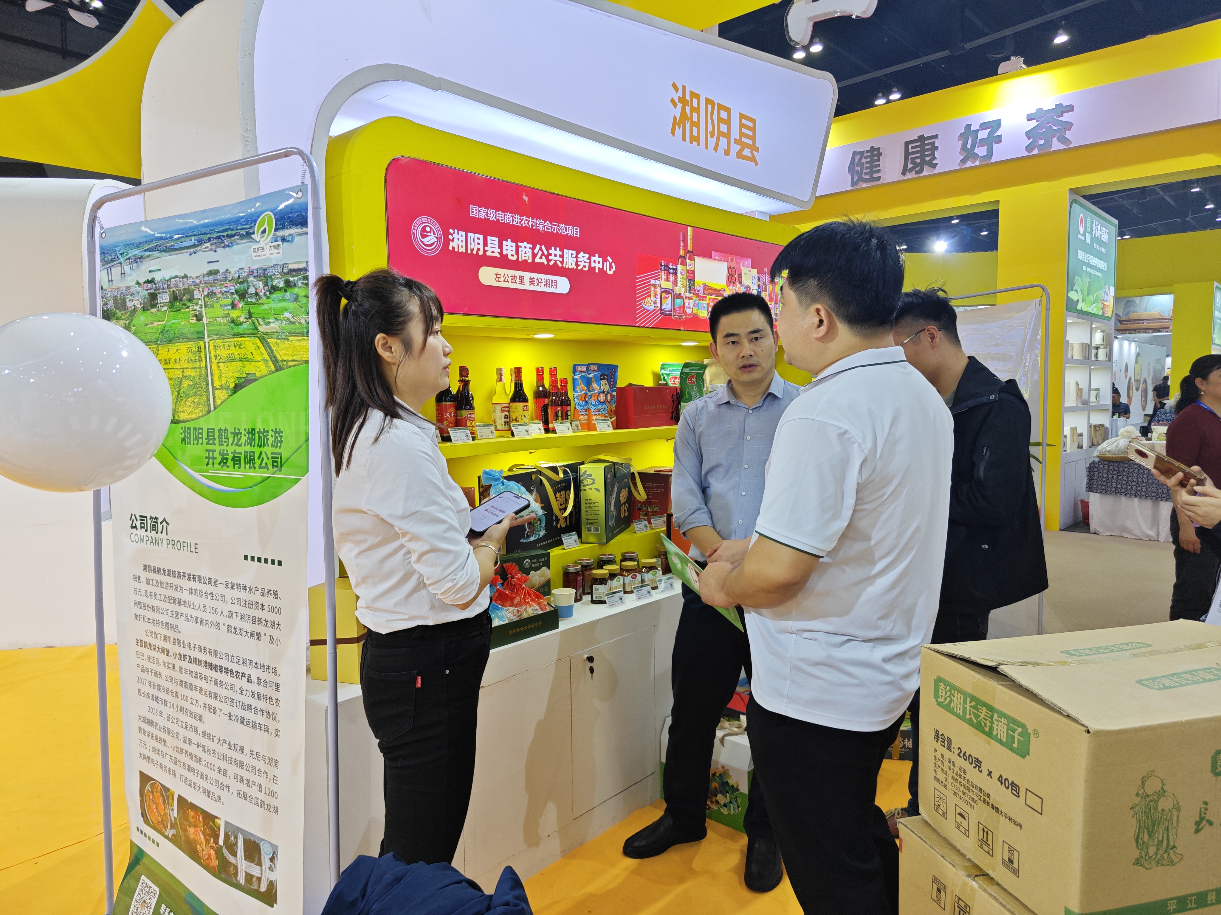 10 月 27 日—31 日,湖南省第二十四届中国中部农博会在长沙国际会展中心隆重举行,本届展会以“办好新农博,奋进新征程”为主题,借着国内电商企业、经销商、渠道商、代理商等齐聚一堂的利好机会,湘阴县商务粮食局高度重视,以湘阴县电商服务中心为主携手企业,准备了以长康粮油、海日藠头、鹤龙湖大闸蟹、嗳也拌饭菜、横岭湖小鱼仔等为主的 20 余种产品参加本次展会。